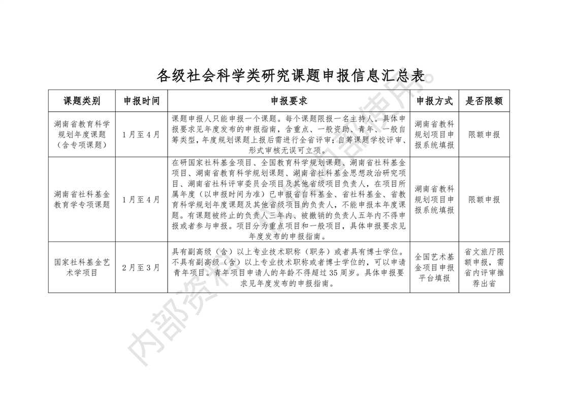 各级社会科学类研究课题申报信息汇总表